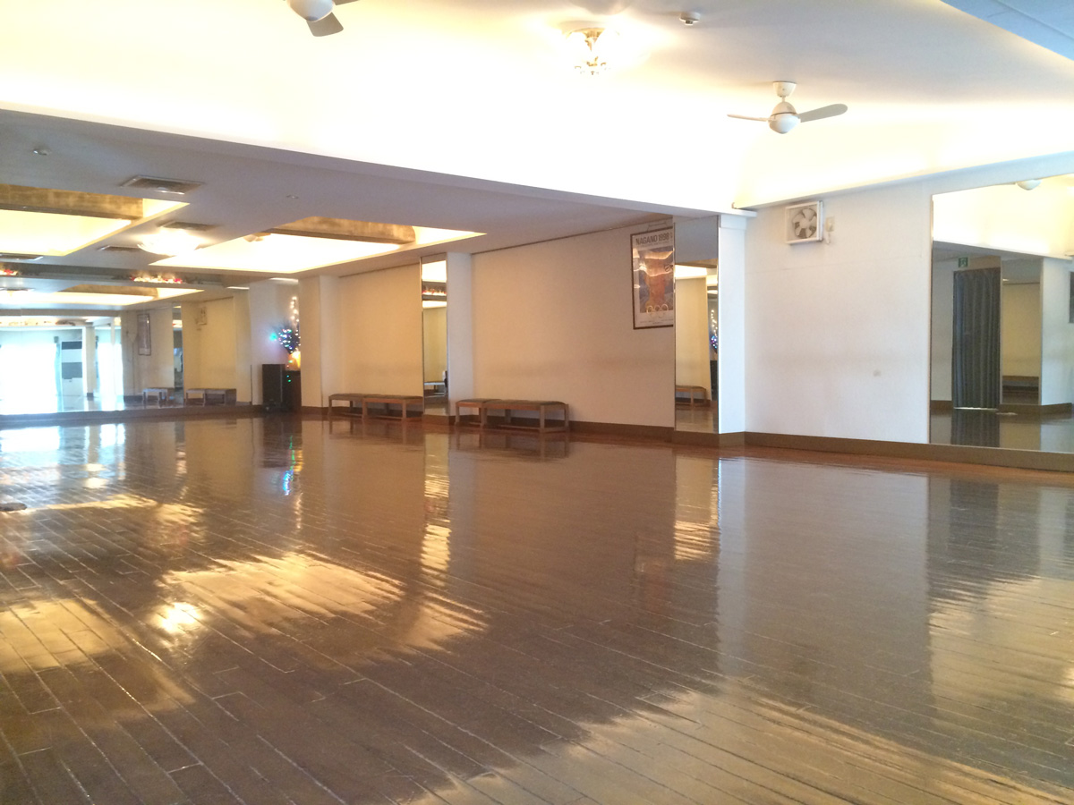 当ホールは、「国産桜無垢」を使用した40坪の本格的音響設備のダンスホールとなっており、適度な弾力があり、疲れを感じさせない床となっておりますので、